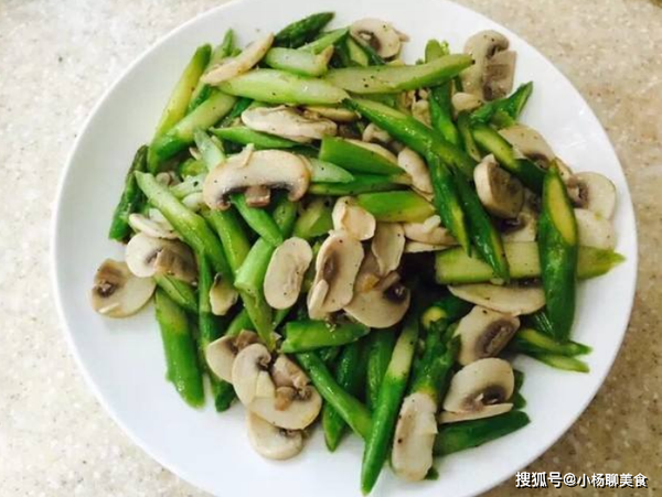 蘆筍炒口蘑既簡單又很有營養,是一道非常健康的家常美味。特別是長期便秘、飲酒的人群,都可以常吃這道菜肴,有助於保護肝臟,還能够治療便秘。