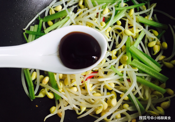 烹飪步驟1:將黃豆芽去根之後,清洗乾淨,控幹水分。