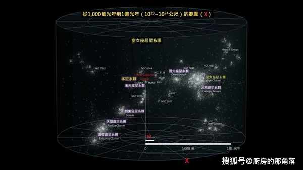 這個室女座超星系團直徑達到了1.1億光年,其中至少有100個星系群和星系團