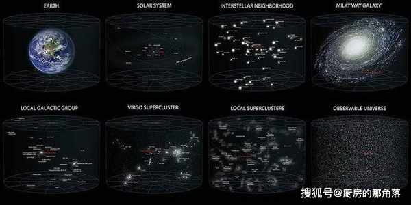 地球→太陽系→銀河系→本星系群→室女座超星系群→可觀測宇宙→宇宙