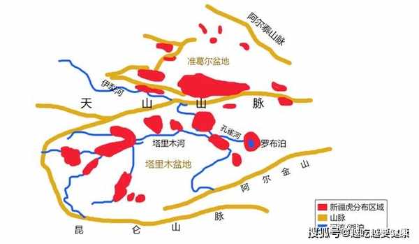 這裡面需要提一下新疆虎,這是我國最早消失,也是唯一一種已經滅絕了的現代虎,雖然也受人類捕殺,但總的來說導致新疆虎滅絕最主要的原因還是環境驟變。前面說過,新疆虎在天山南北的分佈呈零散狀,多分佈在水源附近,所以弄清了新疆的水系分佈,便弄清了新疆虎的分佈。