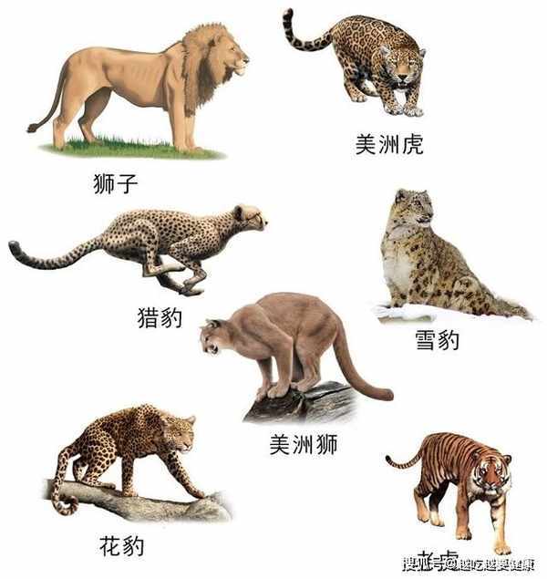 它們分別是猫科豹屬的虎、獅、豹、雪豹、美洲豹,以及猫亞科的美洲獅、獵豹