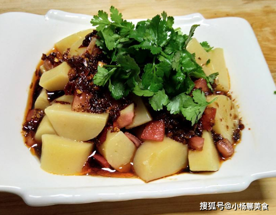 食材清單:米豆腐300克,土豆、酸豆角、辣椒油、香醋、香葱、鹽適量。