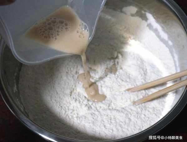 拿500g的麵粉為例,先用250g的30度左右的溫水先將5g酵母粉化開,靜置幾分鐘,然後將麵粉放到盆子裏,加上2勺白糖,將酵母水分多次加入到麵粉中,邊倒邊攪拌,攪成沒有乾粉的面絮之後再下手揉成"三光"麵團,也就是盆光、面光、手光。