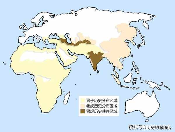 從老虎與獅子的棲息地擴張方向來看,它們都有往一個方向走,中間極有可能存在共存的區域,而這個區域最有可能的就是中亞地區。對比老虎與獅子的歷史分佈之後,的確發現了它們存在很大一片交集的地帶,而它們重合的區域就是中亞、西亞及印度次大陸部分地區。