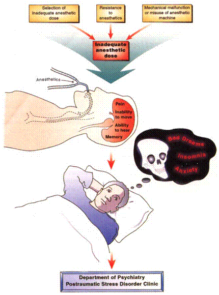 學術上把這種情況稱為麻醉覺醒,官方的說法就是,在進行外科手術全麻時,病人的運動神經被麻痹而意識卻依舊清醒,如果在這種狀態下進行手術,每一次的切割、穿透、上藥病人都會清楚的感覺到。這種可怕的情况並不是罕見的,僅僅在美國,每年就有6萬人經受過這樣噩夢般的手術。