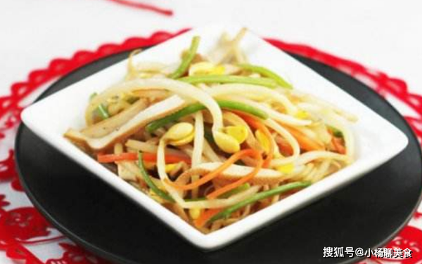 推薦語:黃豆芽是豆芽的一種,其中含有很多水分和維他命,搭配豆干一起炒,為你們補充大量的營養,補充鈣質,促進營養吸收,有助於調理身體,搭配豆芽吃起來不油膩,大魚大肉不如它,鮮爽可口,還可以燃燒脂肪,降壓降脂,減輕體重的作用,瘦掉你們的小肚子,特別是胖子要多食此菜。