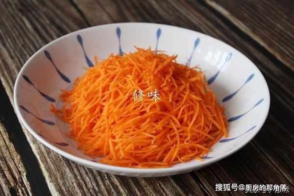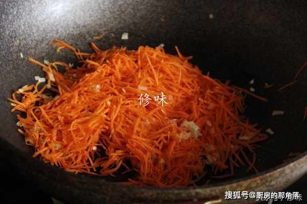5.胡蘿蔔本身就可以生吃,再加上胡蘿蔔的絲非常細,不需要翻炒太長時間,否則會影響口感。