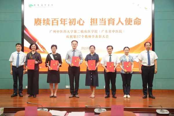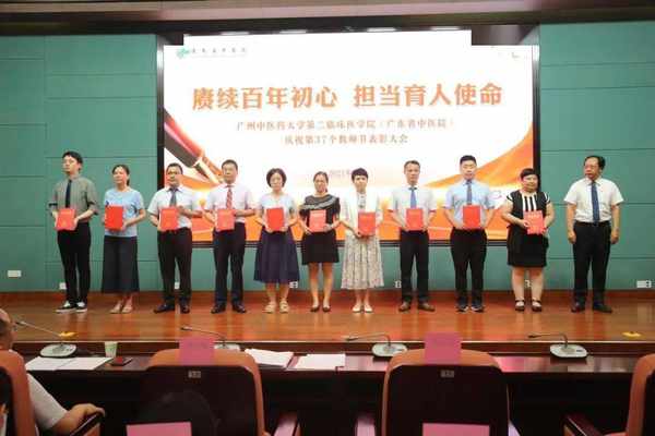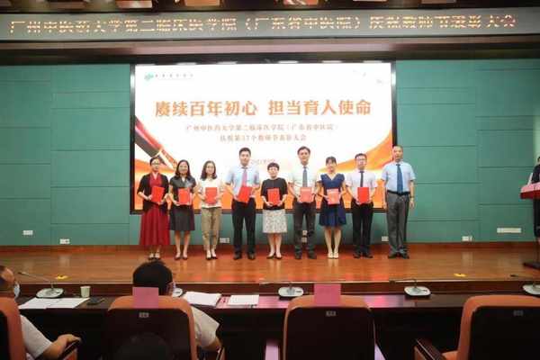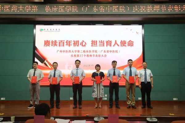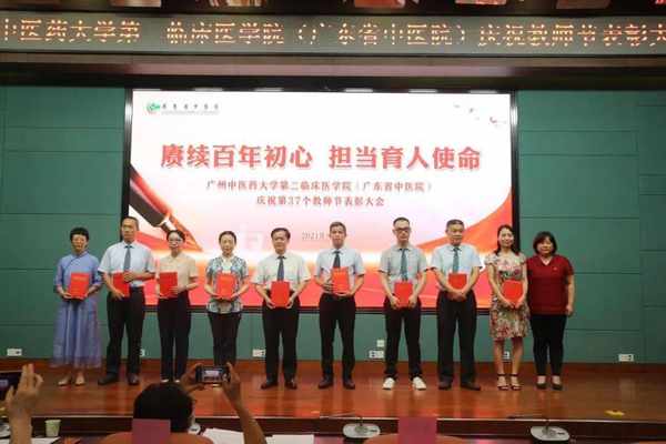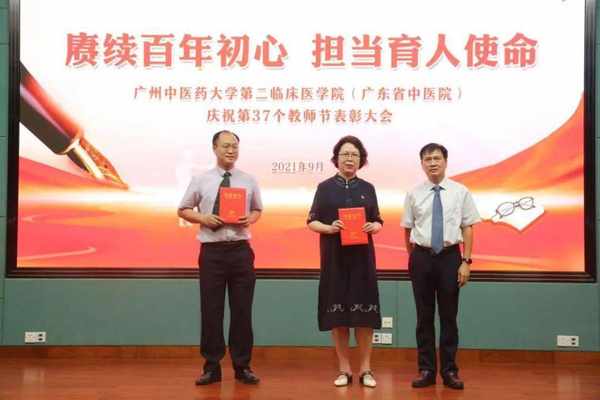 表彰會上,學院副院長陳大偉宣讀了《廣州中醫藥大學第二臨床醫學院關於教師節錶彰先進集體、優秀個人的决定》,醫院領導為獲獎的教研室和個人頒發了榮譽證書。