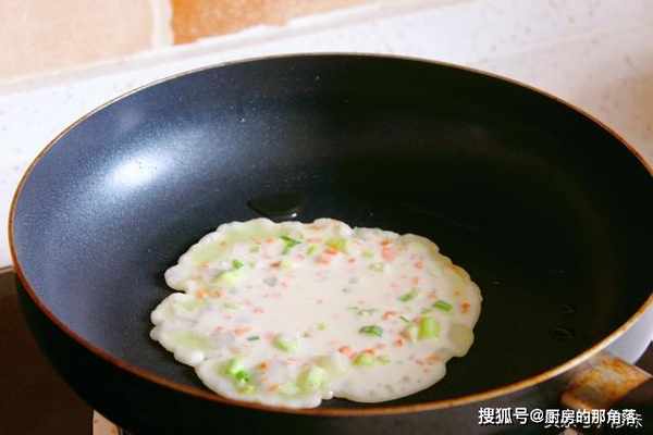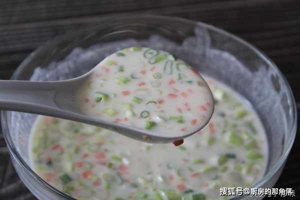 4.攪拌均勻,一個煎餅一勺麵糊正好。