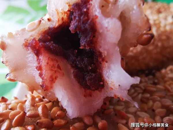 糯米粉用開水燙一下,在芝麻中滾一圈,香甜軟糯,尤其適合女人吃!