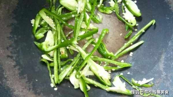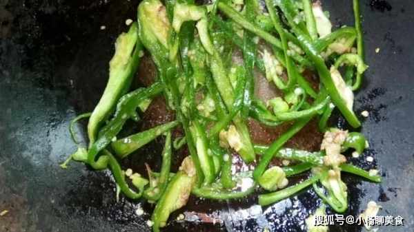 7.起鍋燒油,我們先把青椒爆炒一下。