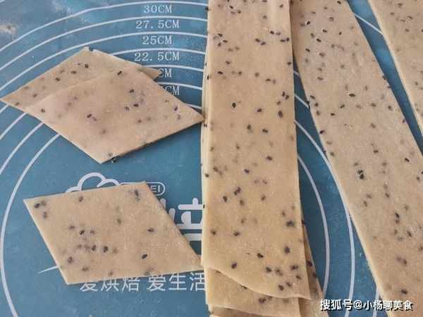 食材準備:200克普通麵粉,2個雞蛋,2克食用鹽,適量熟黑芝麻