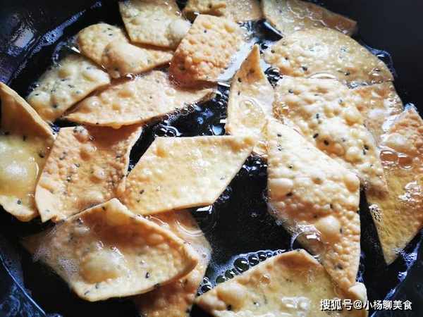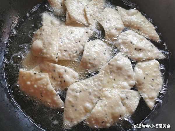 2、炸制麻葉的時候,油溫不能太低了,高油溫炸個2分鐘左右即可,太久會有糊味,而且顏色也會發黑,麻葉炸好之後,要攤開晾凉,然後等到凉透的時候,裝在一個保鮮袋中封口即可,可以保存一個月左右呢,隨時吃都是脆的。