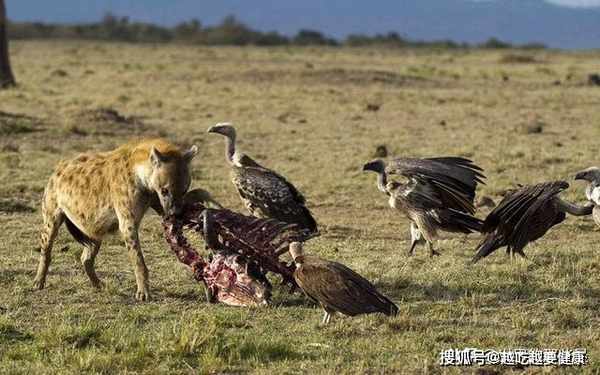 禿鷲的目的很明顯,它就是想等雙方爭奪完畢在進食的時候,撿撿漏,有點邊角料吃吃就很滿足了。而無論是獅子還是鬣狗都不會攻擊它的,畢竟禿鷲這點食量它們是不會放在眼裡的。其實鬣狗不會攻擊禿鷲還有另外一個原因,那就是鬣狗是食腐動物,一般來說有禿鷲的地方就會有腐肉,所以鬣狗經常跟著禿鷲,目的就是找到食物。
