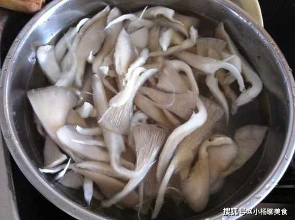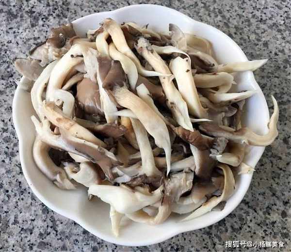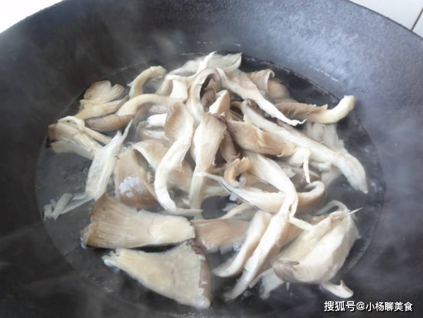 製作步驟1:將平菇去掉根部,將平菇撕成小朵,將平菇下鍋焯水2分鐘,將平菇裡面的水分擠幹備用。