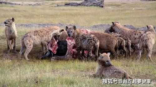 因為鬣狗在攻擊獵物時,二哥一般是選擇團體作戰,一個在前面分散注意力,另外的偷襲後門,雖然有些下流,不過捕獲率很高,通常獵物還沒死,鬣狗就開始吃了,很驚悚的。之前看視頻看了一個聰明的野牛,在灌木叢中蹲下了,鬣狗拿它一點辦法都沒有,最後鬣狗們只能選擇放弃!
