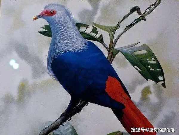 這是地球上自然生長的最美麗的鴿子。藍色的羽毛和紅色的翅膀,極其豔麗,曾經廣泛生存在斯塔尼亞叢林,然而,中世紀,歐洲人跨過大洋到達後,把它們當做老鼠一般的害鳥,短短幾年,就消滅的乾乾淨淨,如今,它只能成為傳說。