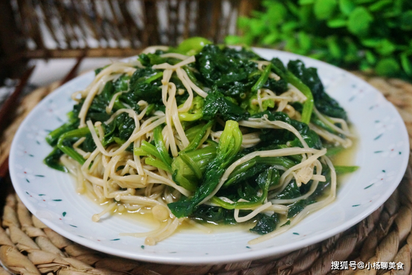 推薦語:菠菜是餐桌上的嫩葉蔬菜之一,葉片富含許多葉綠素,鈣質和鐵元素,這些物質都是人們生長發育有利物質,維他命成分很高,能够補充很多能量,促進鈣質快速吸收,滋補身體,而且金針菇自古有"補腦菜"的美譽,兩者一起搭配,鮮香入味,營養均衡,老人吃了預防智力衰退,孩子更加聰明,而且春節期間吃過多油膩的食物,不妨試一試這道清爽可口的菠菜炒金針菇吧。