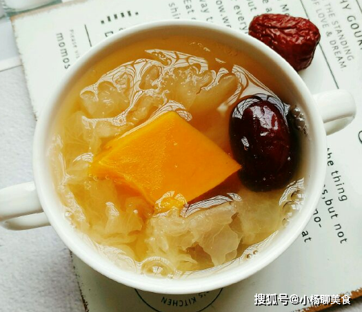推薦語:南瓜是多功能的營養食材,口感細膩,軟糯可口,搭配銀耳一起燉,營養滋補,非常適合冬季來食用,銀耳是女性的養生美容湯,有著窮人的"燕窩"之稱,搭配南瓜還可以起到補中益氣,強身健體的作用,女性想要更年輕,作用於人們肌膚,補血養顏,消除皺紋,肌膚越來越細膩,女性愛美不妨要多喝此湯。