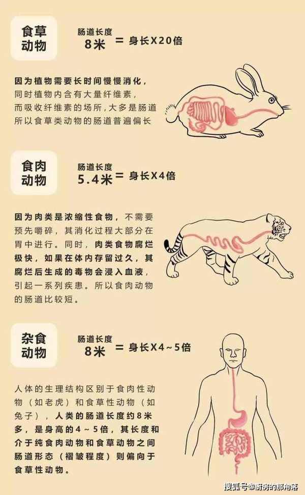 ,這導致食草動物的腸道普遍比食肉動物更長,然而較長的腸道本身又會浪費大量能量。