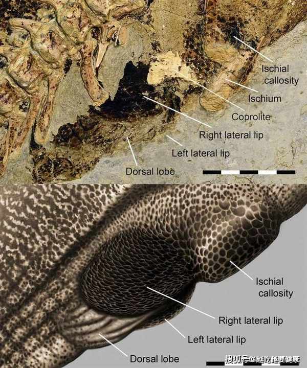研究還發現,該化石的泄殖腔保存得非常好,該化石顯示,其泄殖腔的開口兩側有一對側唇,側唇之間有一坨腫塊,科學家們推測