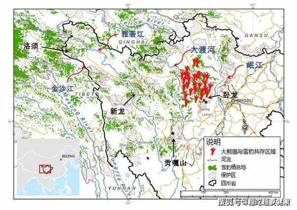從大熊猫與雪豹的歷史分佈區域來看,有些地方是重合的,而這個重合的地帶,就位於四川境內。