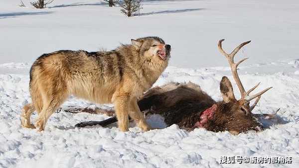 比如在北美地區,灰狼群主要以各種鹿、北美野牛等大型獵物為食,它們成群結隊捕食,一個中等數量的狼群,甚至能够放倒500千克的駝鹿,並且能够在幾個小時內就將獵物吃光。