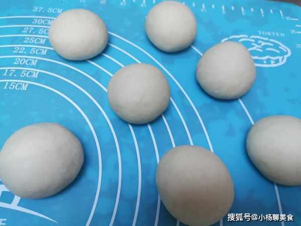 2、醒好之後,取出來稍微揉搓一下,分成大小均勻的劑子,每個劑子揉圓。