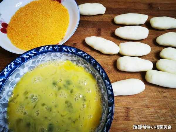 食材準備:1個洋芋(大約300克),50克的玉米澱粉或者洋芋澱粉,20克的白糖,雞蛋液適量,麵包糠適量