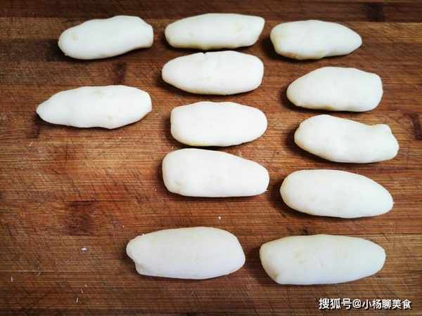 4、把揉成團的洋芋麵團,分成一個個的小劑子,每一個大約30克,之後用手搓成圓柱形。