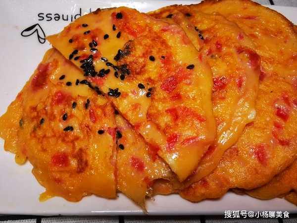 調蕃茄雞蛋麵糊的時候,一定不要太稀了喲,否則餅容易爛,不好定型,煎制的時候小火不要心急,保證一次成功。