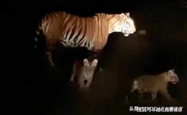 圖:不久前,保護區工作人員在夜間拍到母虎貝爾丹達帶著幼崽活動的畫面