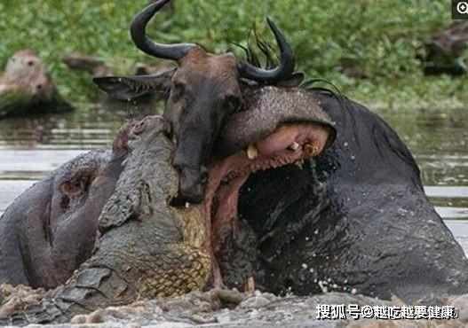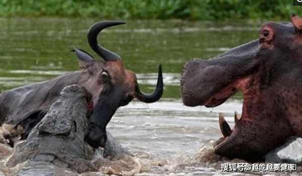 但是這個時候轉機出現了,一隻河馬竟然成為了角馬的幫手,此時的鱷魚好像也有點害怕的樣子,畢竟它再厲害也不是它們的對手。就這樣,角馬成功逃生了。