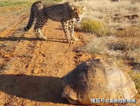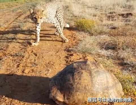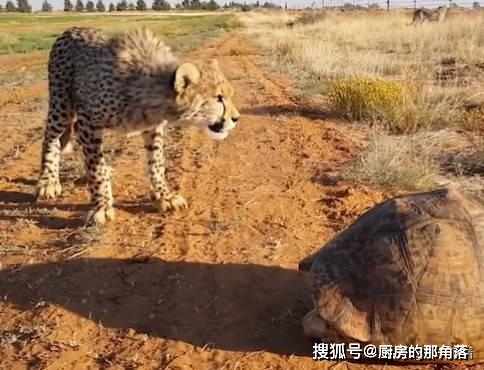 然而,這個時候一隻陸龜突然映入了獵豹的視野,獵豹欣喜不已,覺得自己可以大吃一頓了。