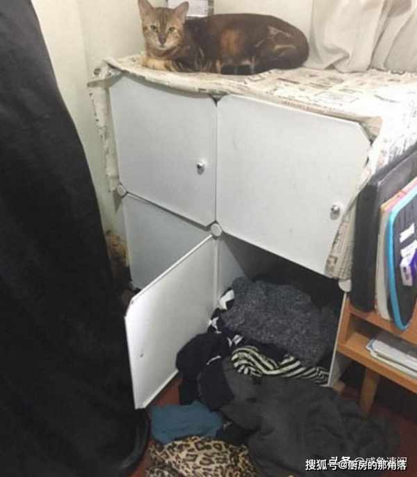 再三猶豫之後,小猫咪還是决定打開衣櫃的門,可誰知道,打開了一道門,裡面竟然還有一道門。小猫咪只知道打開一道門就行了,它不知道怎樣開第二道門,於是小猫咪被主人成功的阻擋在了衣櫃之外。哈哈,這主人够聰明吧!