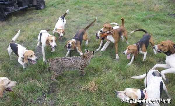 圖:北美獵人用獵狗圍獵短尾猫的畫面