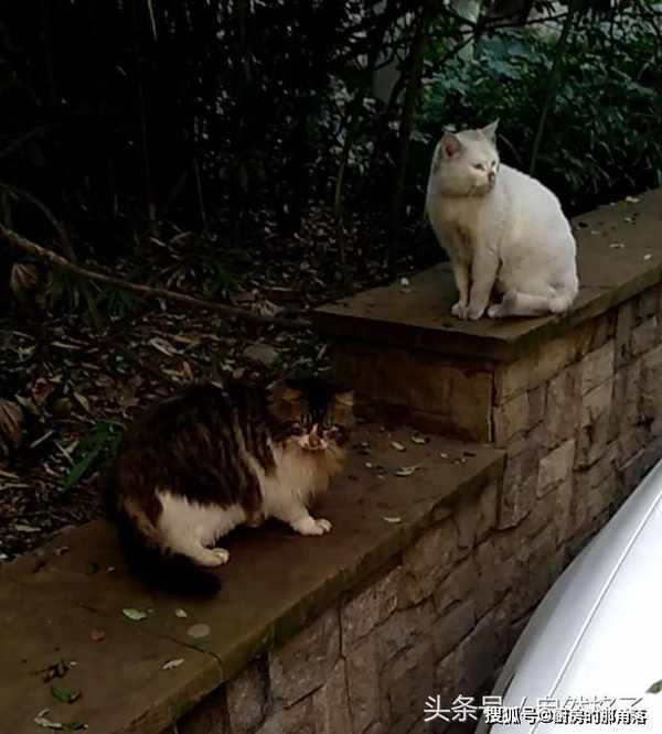 猫見車子的主人來開車,慢悠悠地跑一邊去了。它們並不跑遠,因為這兩隻流浪猫和社區裏的人都很熟。朋友見它們的樣子太可愛了,忍不住給他們拍了照。