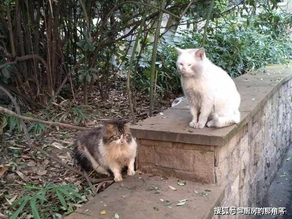 這時,朋友從車子裏拿出了貓糧,倒出來一些放在臺階上。兩隻肥猫看見了,走過來吃了起來。它們不怕人,社區裏的人都經常拿食物喂它們,所以它們才能長這麼肥。看起來雖然髒兮兮的,但是有吃有喝有自由,過的生活可是比神仙還自在啊。