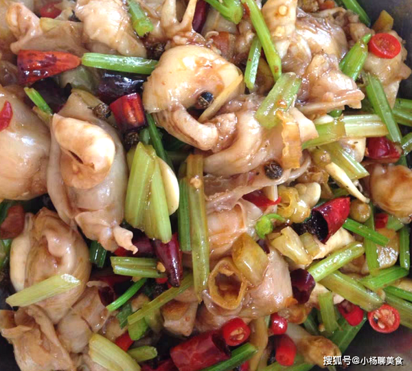 起鍋之後呢,將鍋中倒入適量的紅辣椒,生薑,大蒜進去,香味激發後,將魚泡倒入鍋中,快速的翻炒。