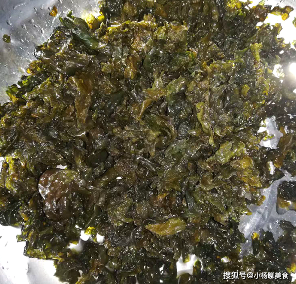 接下來呢,將地皮菜提起浸泡在水中,這個季節只有脫水的地皮菜,泡發後再用清水沖洗,瀝水後放在一邊。