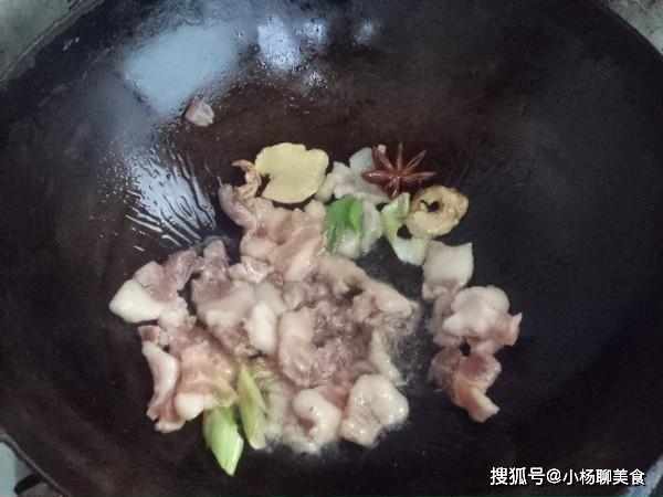 5.五花肉入鍋炒。