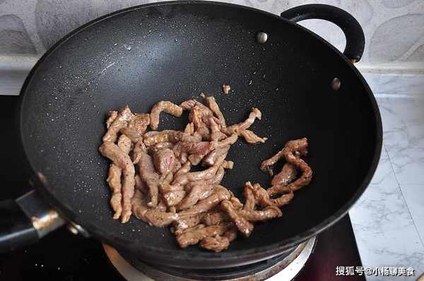 1牛肉切成筷子般粗細的長條,然後加入一勺蚝油、少許食用油、磨入適量的黑胡椒,加入少許的澱粉抓勻。食用油可以讓鎖住牛肉的水分不流失,黑胡椒建議多放點,既能去腥膻,又能提升牛肉的味道。澱粉不多放,放澱粉的目的也是為了鎖住牛肉的水分,讓牛肉炒制時更嫩。我一般都是早上出門前將牛肉醃制好放冰柜,中午回家後取出炒制。您如果直接炒也沒關係,醃制十分鐘左右即可。