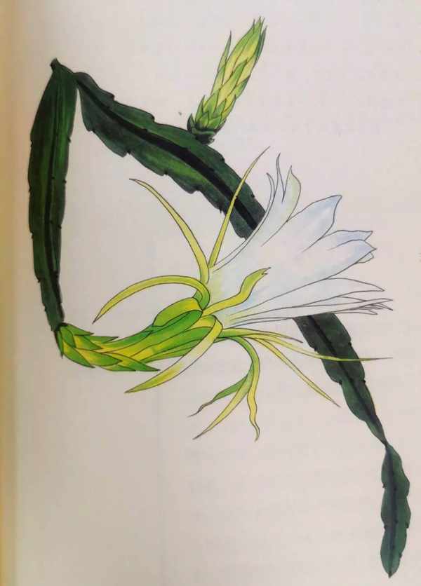 霸王花又名為劍花,是仙人掌科中量天尺的花。據說廣東肇慶的七星岩也盛產霸王花,它可以淩空倒掛在絕壁之上,猶如懸在空中一把尺,囙此得名"量天尺"。量天尺的花和曇花一樣,常常在夜間開放,全開時就像一個小酒杯,這就是"霸王花"。霸王花不僅好看還好吃,采下後縱向切開,隔水蒸後並曬乾後,可以保存很長一段時間。
