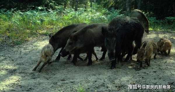此外,2015年以來,納利博基森林裏的大型有蹄動物數量也在增多。下圖中,這一大家子野豬出現在了狼仔經常休息、玩耍的地方。雖然有蹄類通常作為狼的獵物,但大型有蹄類富有攻擊性,會傷害狼仔。在這裡曾發生過兩次野豬殺死幼狼的事,野豬不但殺了幼狼,還將它們吃了。野豬是雜食性動物,有時也吃肉,這可以看作一種特殊的捕食行為。