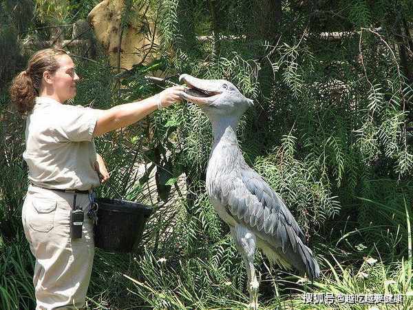 鯨頭鸛是鳥類中的一枚大吃貨。它靜立在水中等待,沒有經驗的小鱷魚往往會在一瞬間進入鯨頭鸛肚裡。不僅鱷魚,什麼肺魚、蝸牛、甲魚、烏龜等都是鯨頭鸛的零食,甚至它在吃烏龜的時候連龜殼都一起吃到肚裡,消化能力令人瞠目結舌。