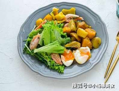 4、紅薯洋芋+蝦+生菜+溏心蛋