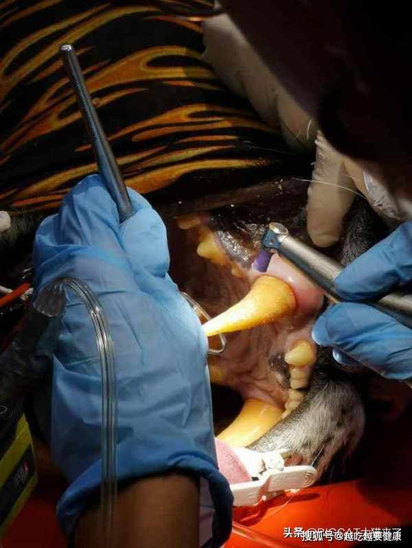 一支醫療團隊就為一隻250斤重的6歲雌性孟加拉虎換上了一顆"大金牙"。