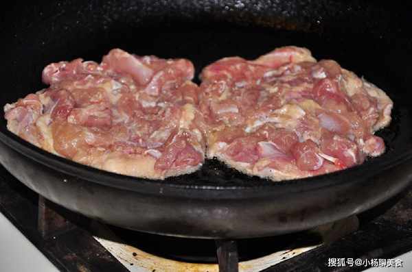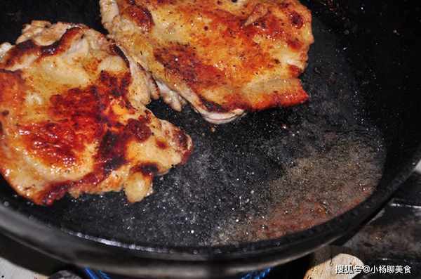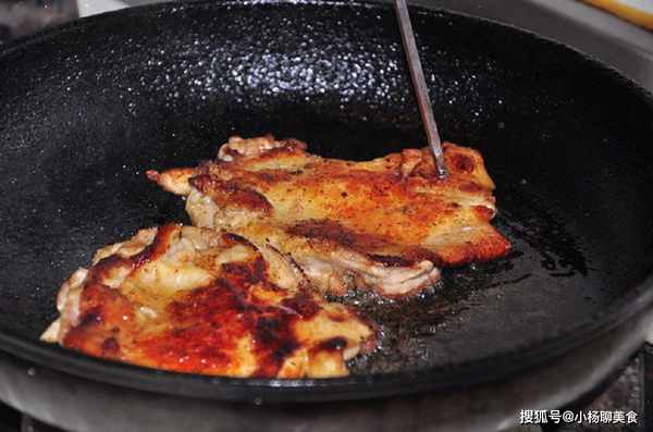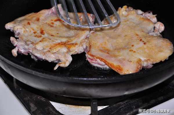 開始煎雞肉前先撲些地瓜粉(其它粉也可)。