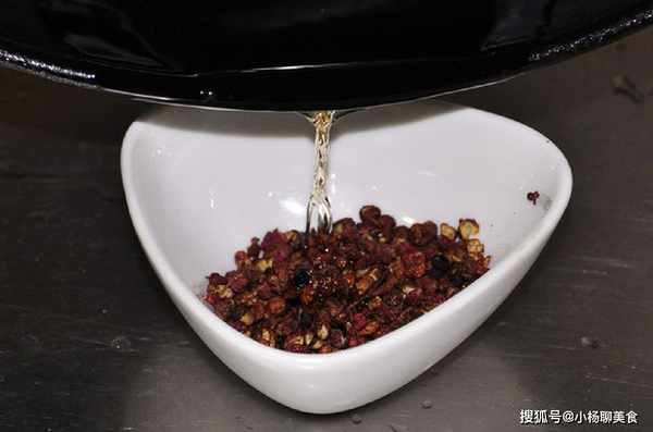 醃肉的同時間,您可以自己做花椒油。先將花椒稍為炒過取出裝碟,再燒30CC左右的橄欖油至冒煙(約100度),倒入花椒中浸泡。(也可直接用花椒粉)